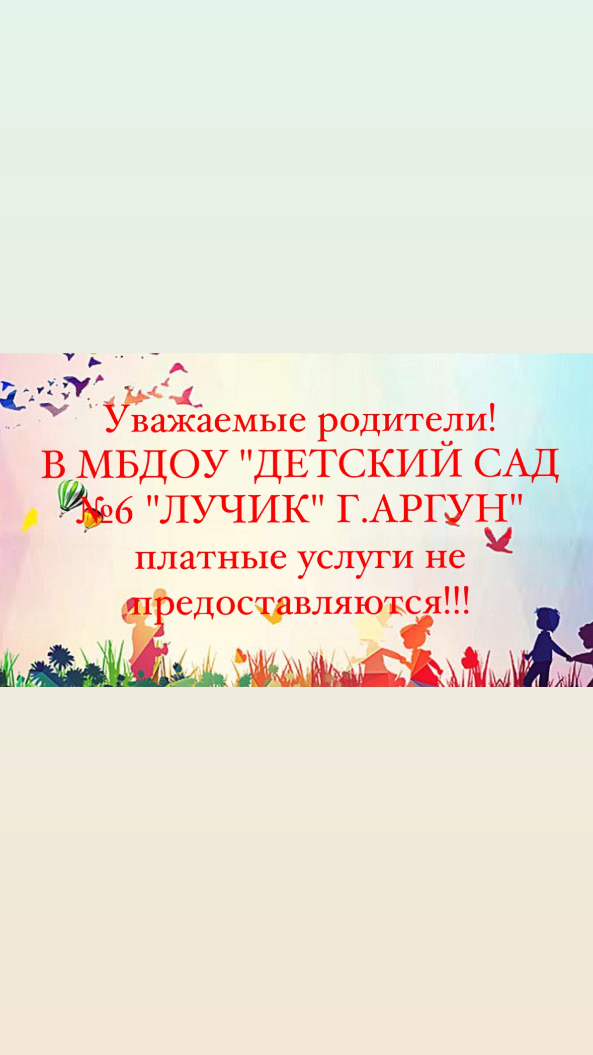 МБДОУ «Детский сад №6 «Лучик» г. Аргун» платных образовательных услуг не оказывает.